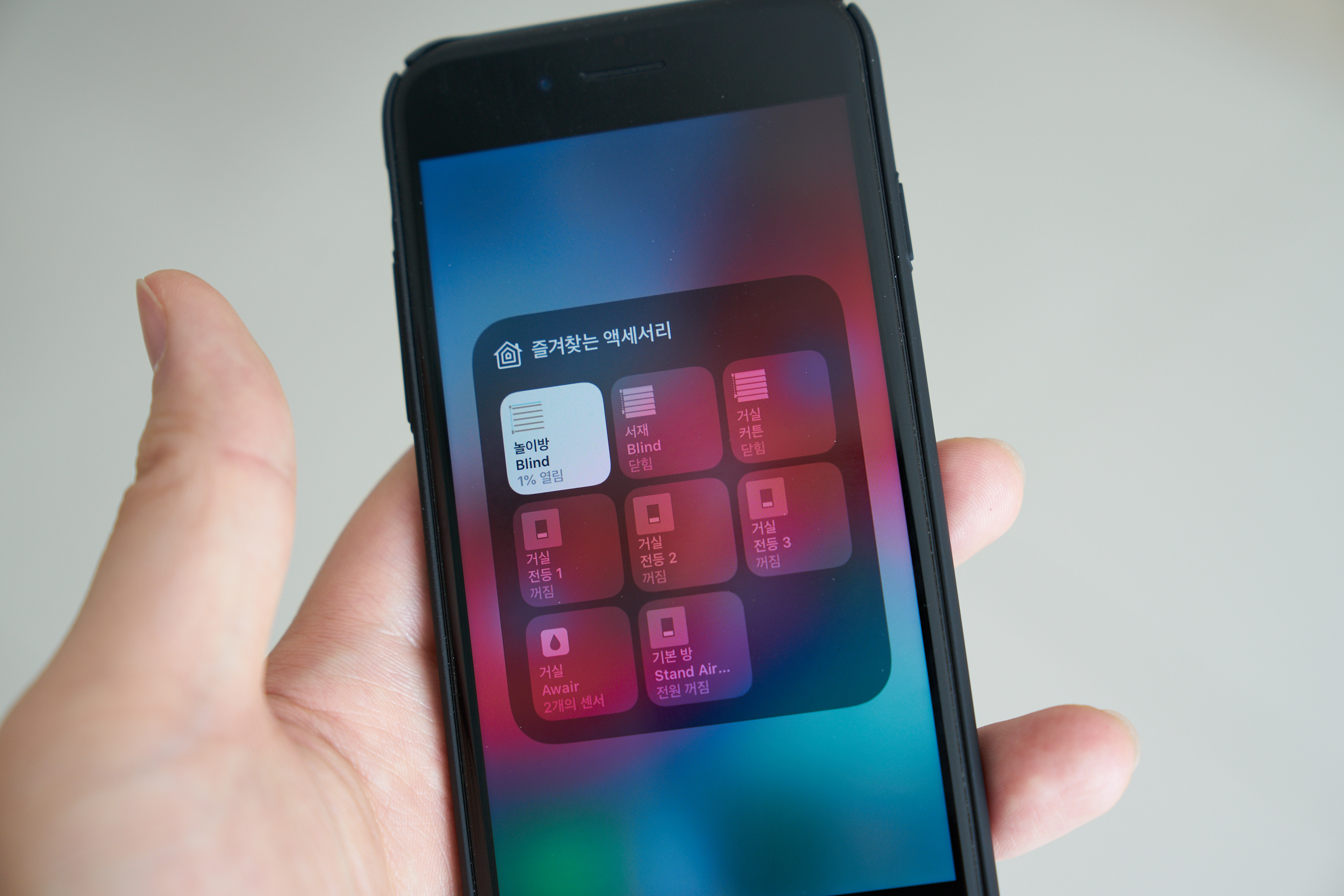 짧게 동영상으로 촬영해봤습니다. 저는 스마트싱스 허브로 대부분의 기기들의 자동화를 만들고, 제어는 홈킷을 이용하고 있습니다. 홈킷의 장점은 시리를 활용할 수 있다는 점과 AI스피커처럼 고정된 위치에서만 사용하지 않고 언제나 움직이면서? 공간의 제약 없이 제어할 수 있다는 장점이 있습니다.