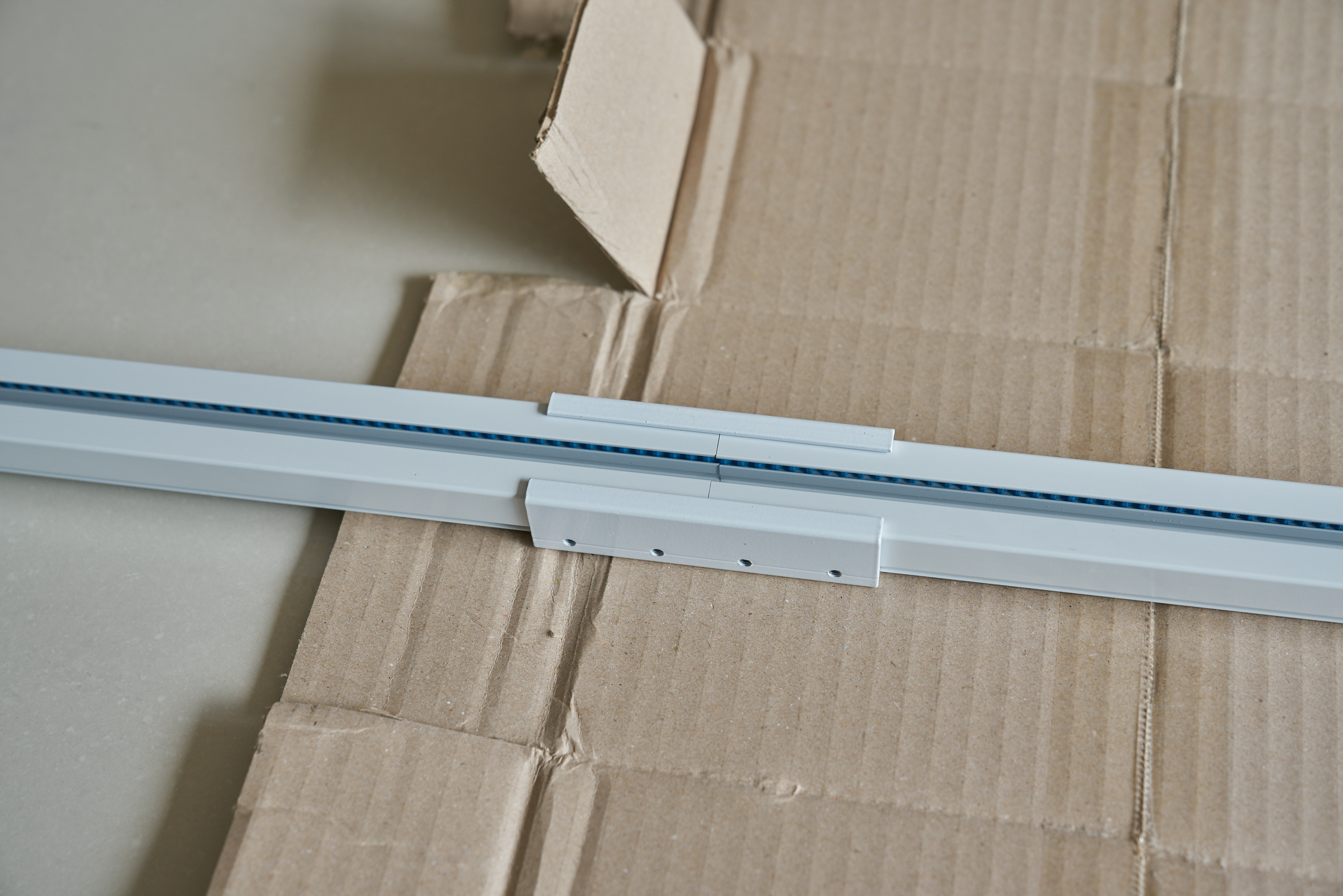 레일은 잘려있는 부분에 덧데어 고정시켜주면 됩니다. 나사로 너무 강하게 조여주면 레일 안쪽으로 찌그러져 들어가는? 현상이 있습니다. 안쪽을 살펴가면서 적당히 조여주면 좋습니다.