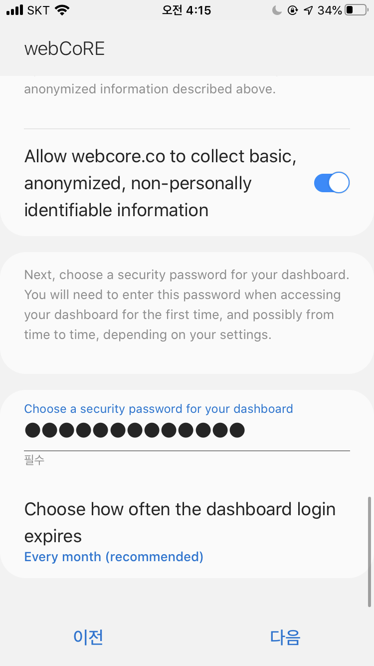 그리고 대시보드에 접속하면 위의 이미지처럼 비밀번호를 입력해 접속하면 됩니다.