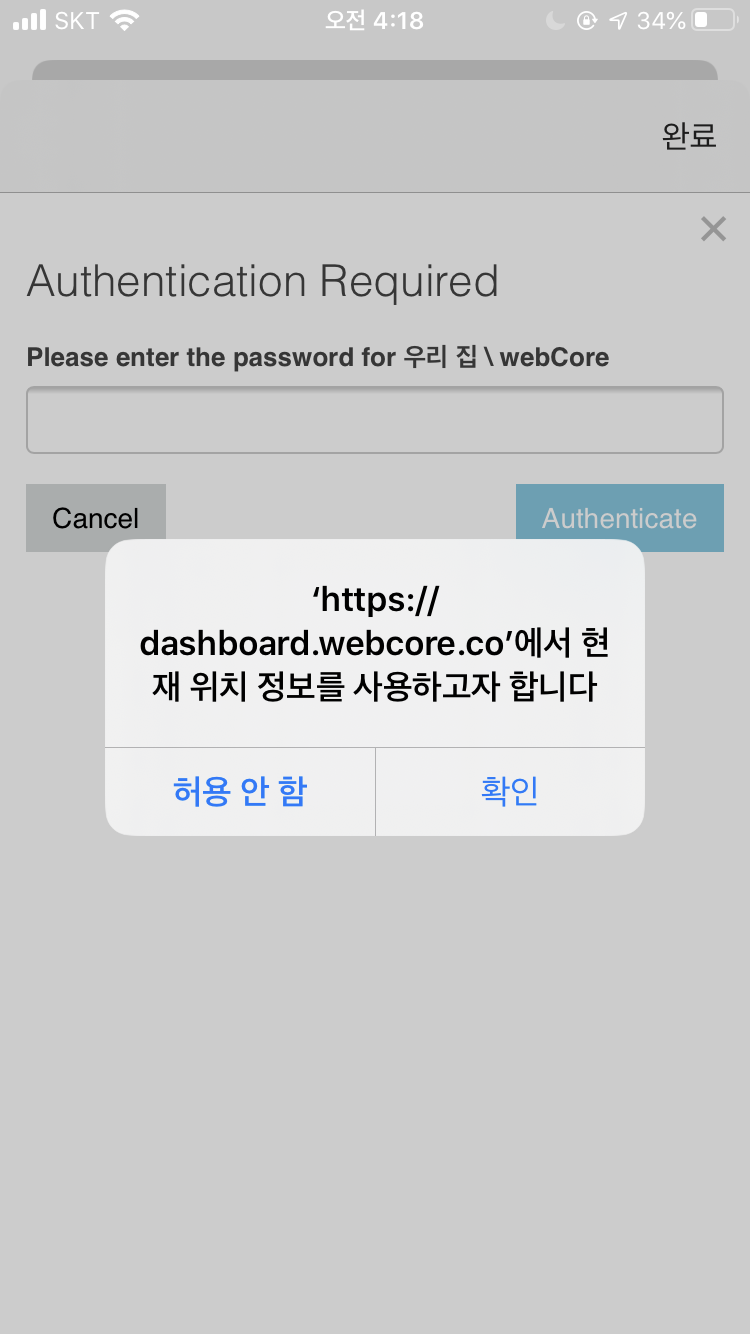 그리고 스마트싱스 앱에서 스마트앱스를 추가해줍니다. 스마트앱스에 웹코어를 추가해주면.. 대시보드 비밀번호를 설정할 수 있고, 설정된 비밀번호를 입력해 대시보드에 접속할 수 있습니다.