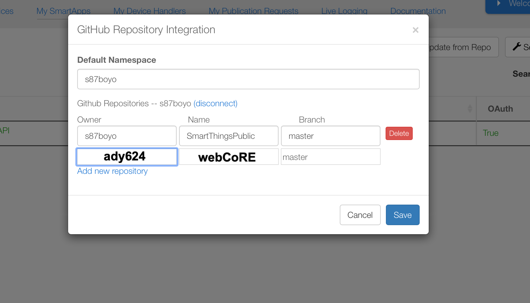 일단 스마트싱스와 깃허브 연동이 돼있으면 설치가 편하기 때문에 연동부터 해주세요.
