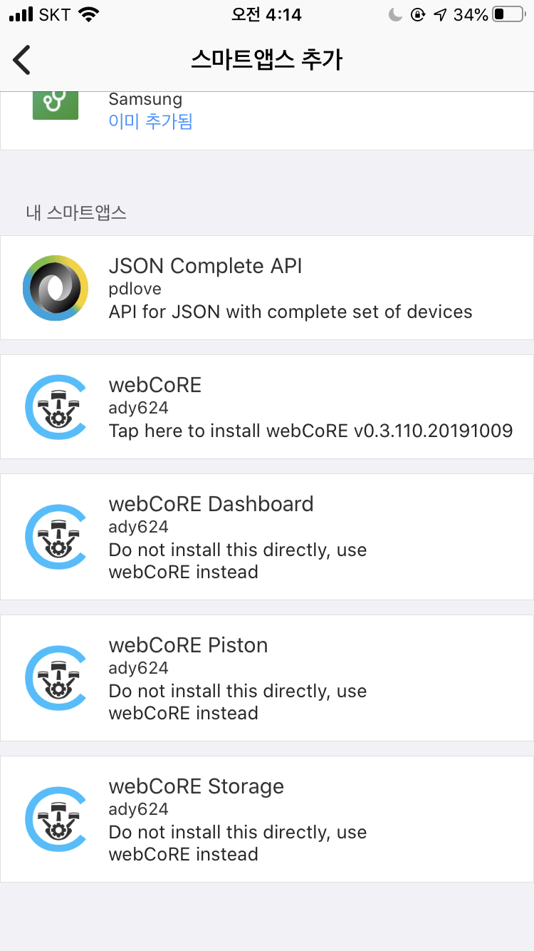 "스마트싱스 허브 웹코어 설치하는 방법"