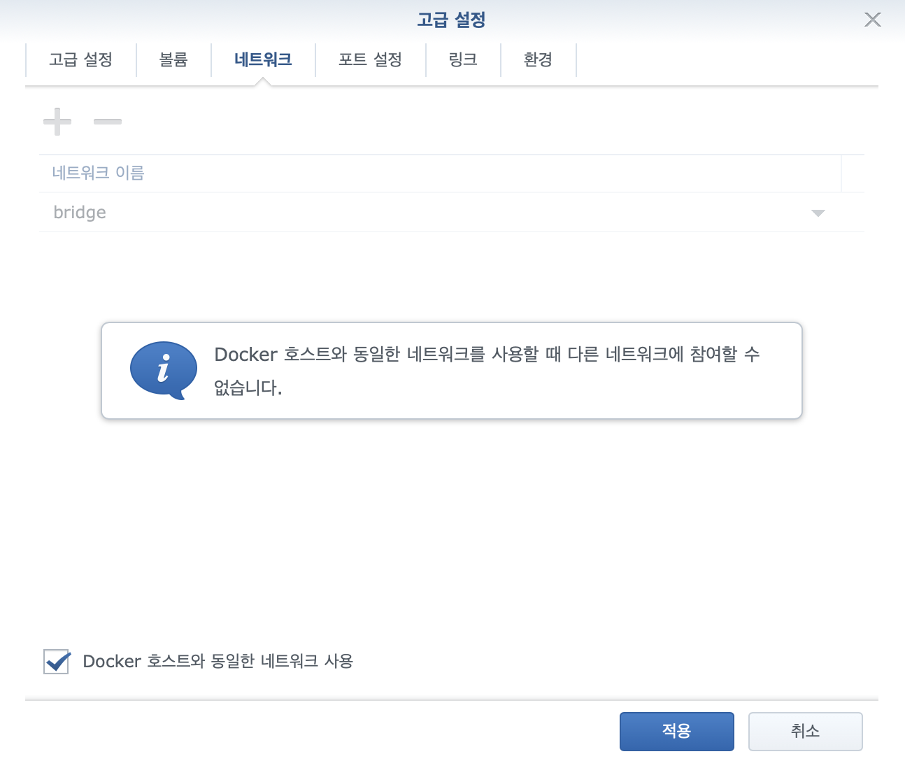 그리고 네트워크 탭에서 호스트와 동일한 네트워크 사용에 체크해주고 적용해준 후 설치하면 됩니다.