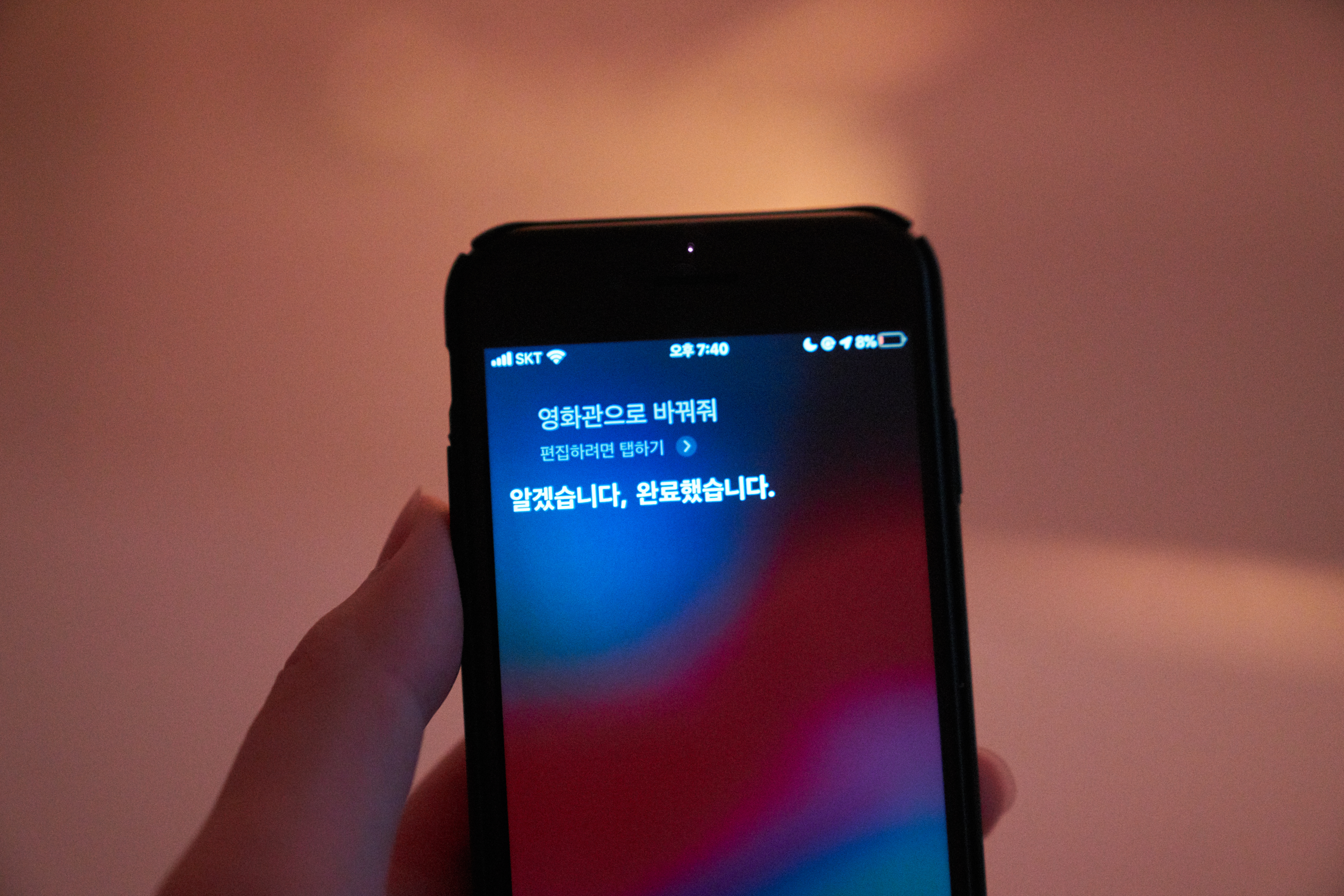 아이폰 단축어로 "영화관으로 바꿔줘"를 등록해놨고, 애플 시리로 명령하면 같이 묶여있는 레시피기 실행됩니다. 일단 거실 조명을 모두 끄고 거실 전동커튼을 닫는 명령을 합니다. 또한 텔레비전과 SK IPTV 셋탑박스를 켜주는 작업까지 한 번에 실행됩니다.