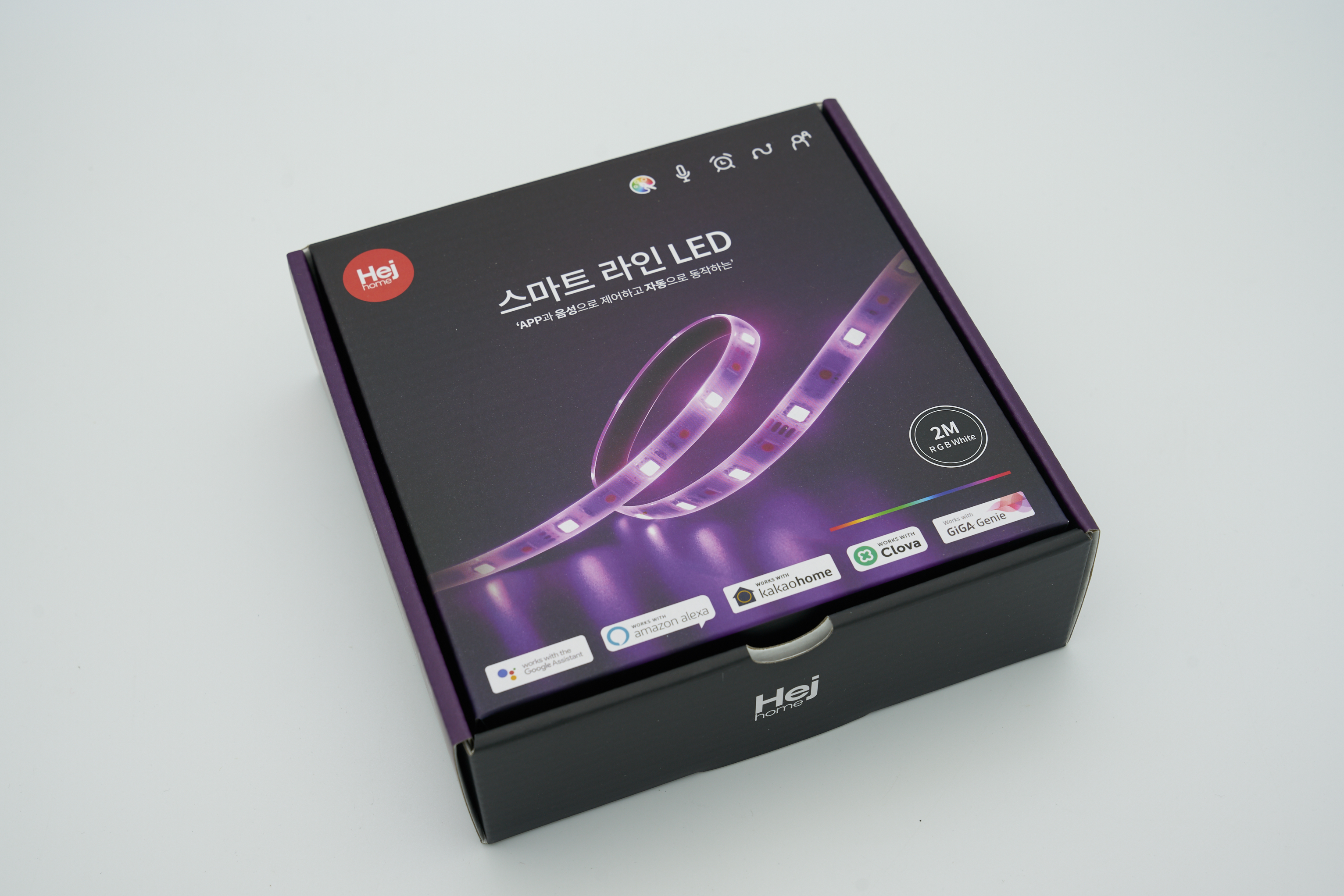 기본적으로 2M 길이의 제품이고 헤이홈 어플을 통해 제어가 가능합니다. 헤이홈 어플에서는 켜고 끄기부터 색을 바꿀 수 있습니다. 당연히 헤이홈 레시피를 통해 다양한 제품들과 연동해 사용이 가능합니다. 예를들면 특정 시간에 켜고 끄기, 센서와 연동해서 문이 열리고 닫히때? 아니면 시간대마다 색을 변화시키는 것도 가능하죠.