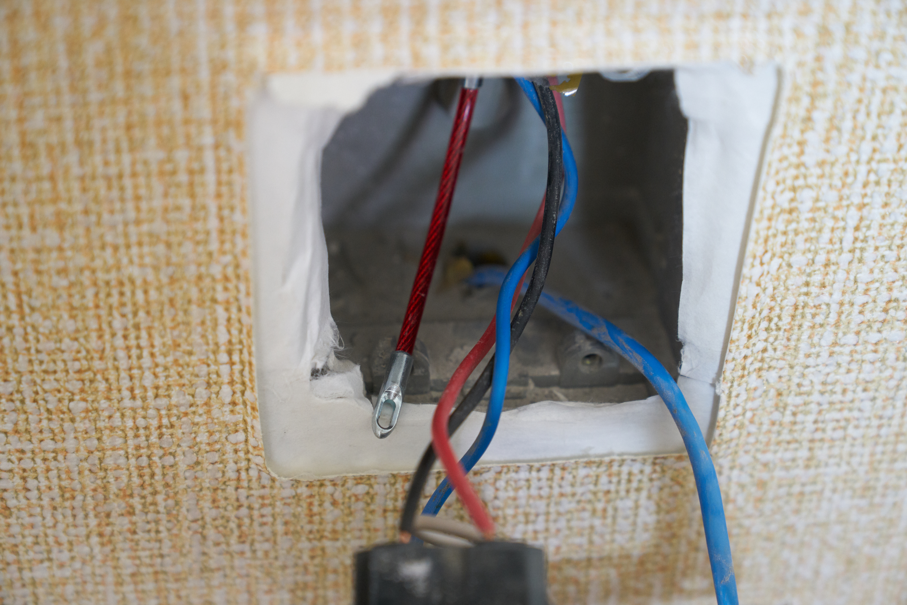 손이 안들어가서 조금 더 크게 만들어줬습니다. 그리고 전등스위치에서 활성선을 끌기 위해 인출선을 이용했습니다. 관로에 선이 3가닥 있었는데.. 어렵지 않게 선을 끌었습니다. 이제 관로포설은 어렵지 않네요. 선끄는 작업은 10분? 20분? 안에 다 해결이 가능합니다.