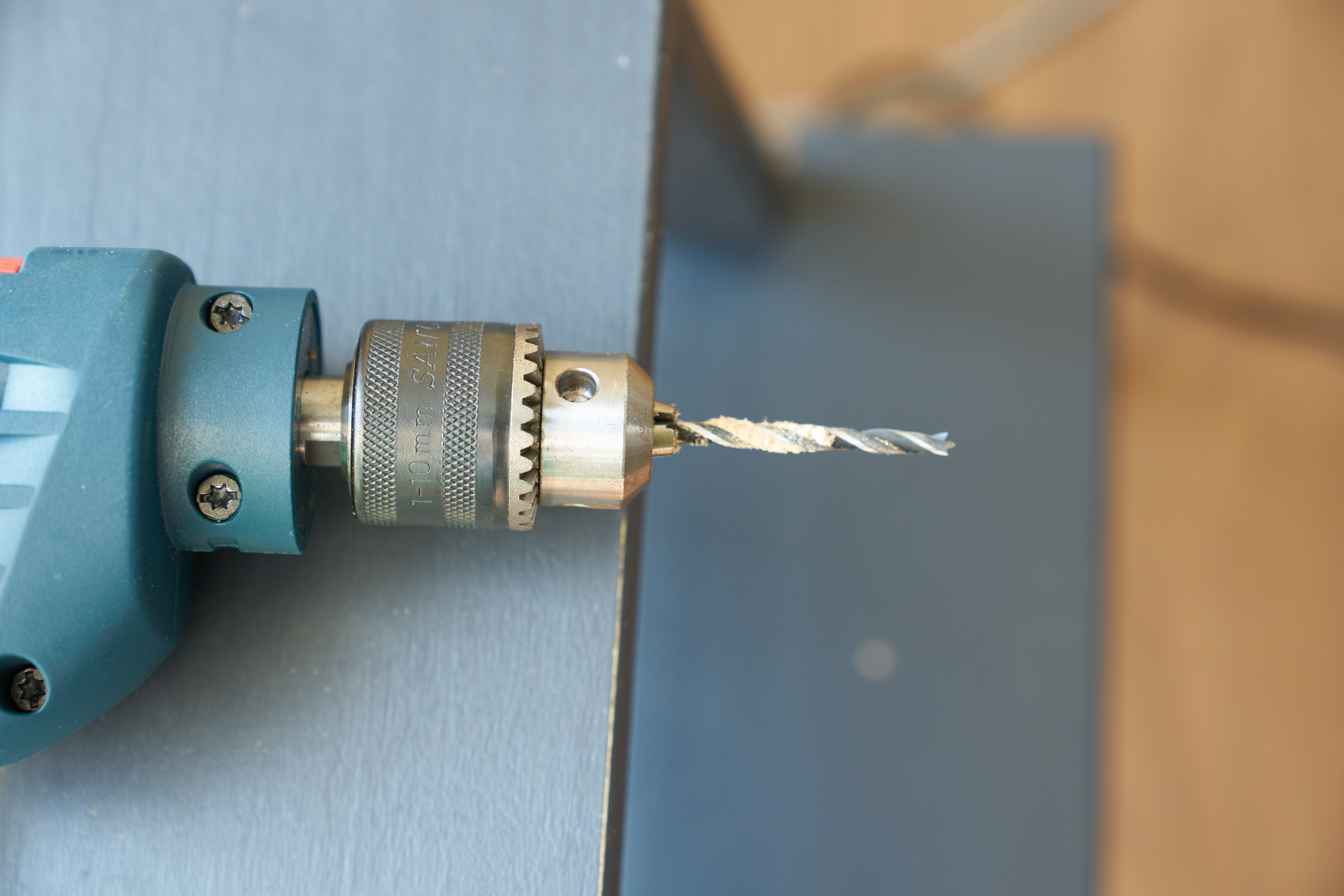 그리고 커튼박스에 콘센트를 만들기 위해서.. 드릴을 사용했습니다. 그라인더나 홀쏘를 이용하면 좋지만.. 저는 드릴로.. 하.. 이게 제일 힘들었습니다. 방 하나 더 작업해야 하는데.. 작업을 시작할 용기가 안날 정도로 쉽지 않은 작업이었습니다. 이유가 또 있는 것이.. 커튼박스 안쪽에 두꺼운 합판으로 덧대져있어서 일반 커튼박스에 구멍내는 작업보다 두배 이상 시간이 걸렸습니다.
