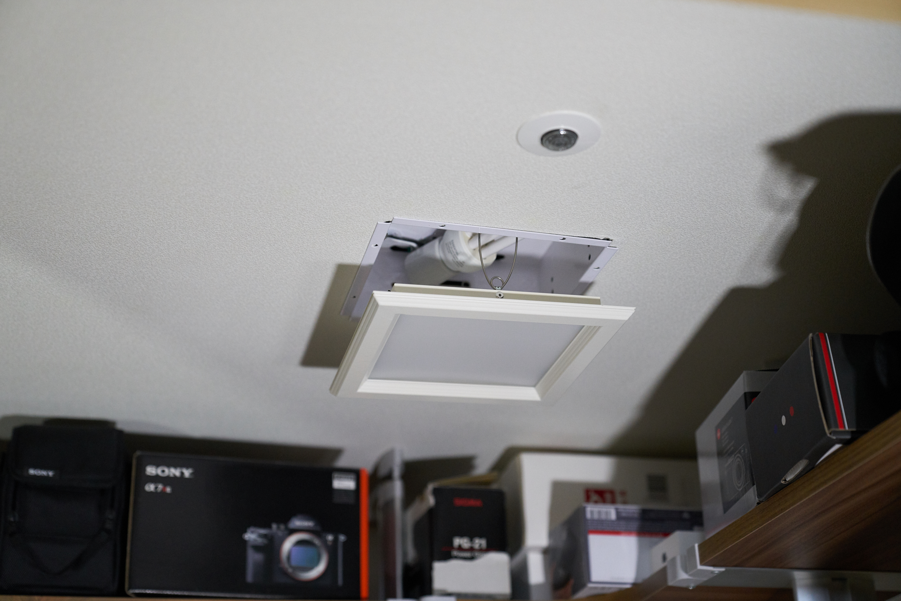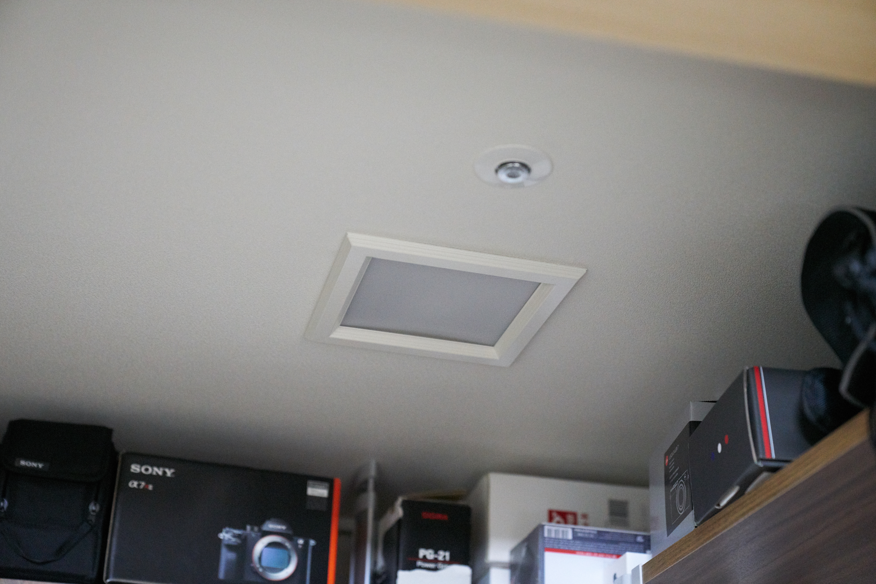 일단 저희집 서재에는 전등이 2개 있습니다. 하나는 천장등, 하나는 팬트리에 안에 있는 전등인데, 팬트리 안에있는 전등은 매립형이라 별도의 구멍을 뚫지 않아도 된다는 점이 아주 매력적이었습니다. 기존 것을 훼손하지 않는다! 가 저의 작업 철학입니다.