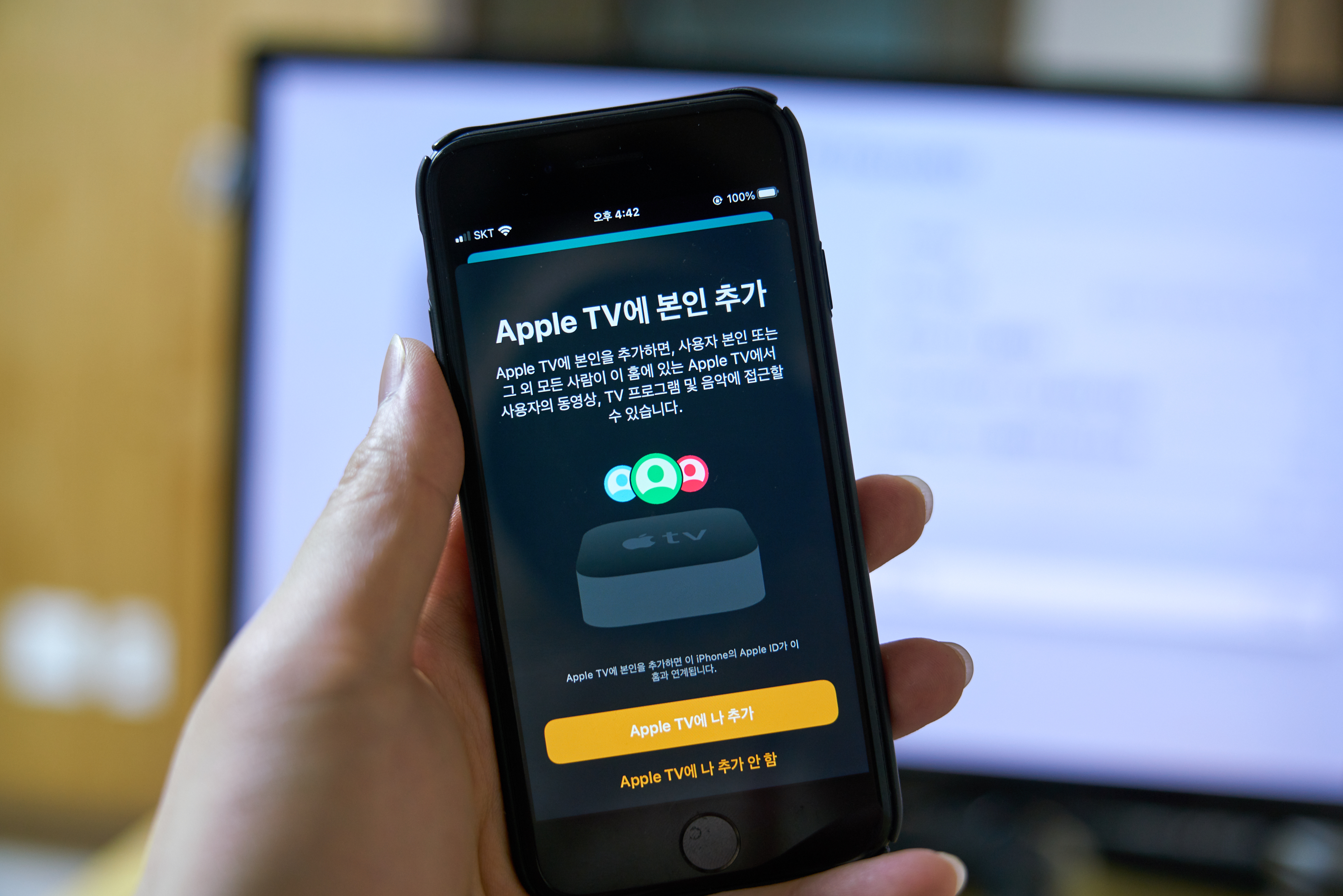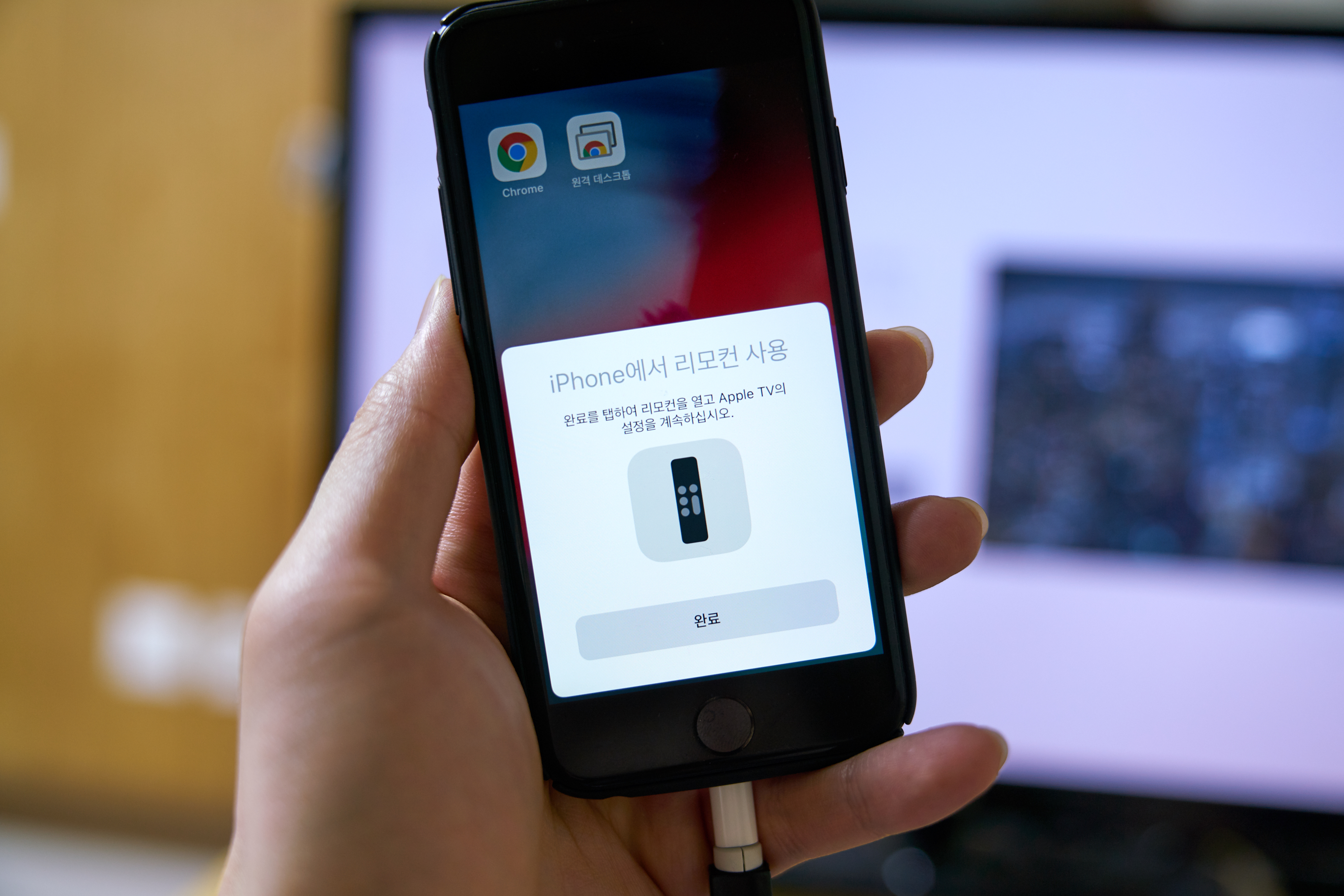 그리고 리모컨이 불편해!! 라고 할 수 있는데.. 처음 세팅할 때 아이폰을 근처에 가지고 있으니 아이폰에서 자동으로 반응하더라고요.