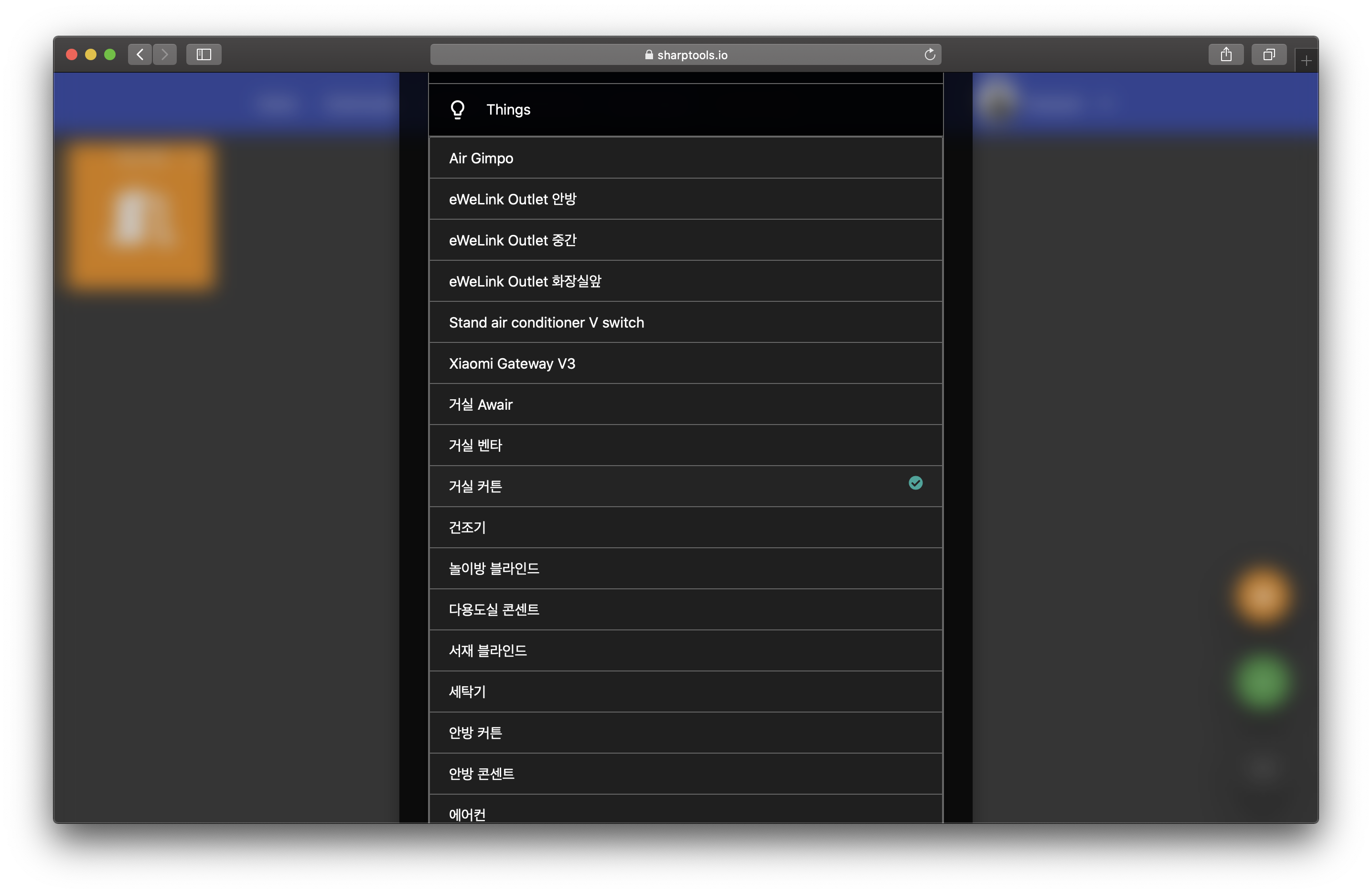 대시보드가 만들어지면 기기들을 선택해 타일을 만들어 줄 수 있습니다. 몇가지를 선택해볼게요.