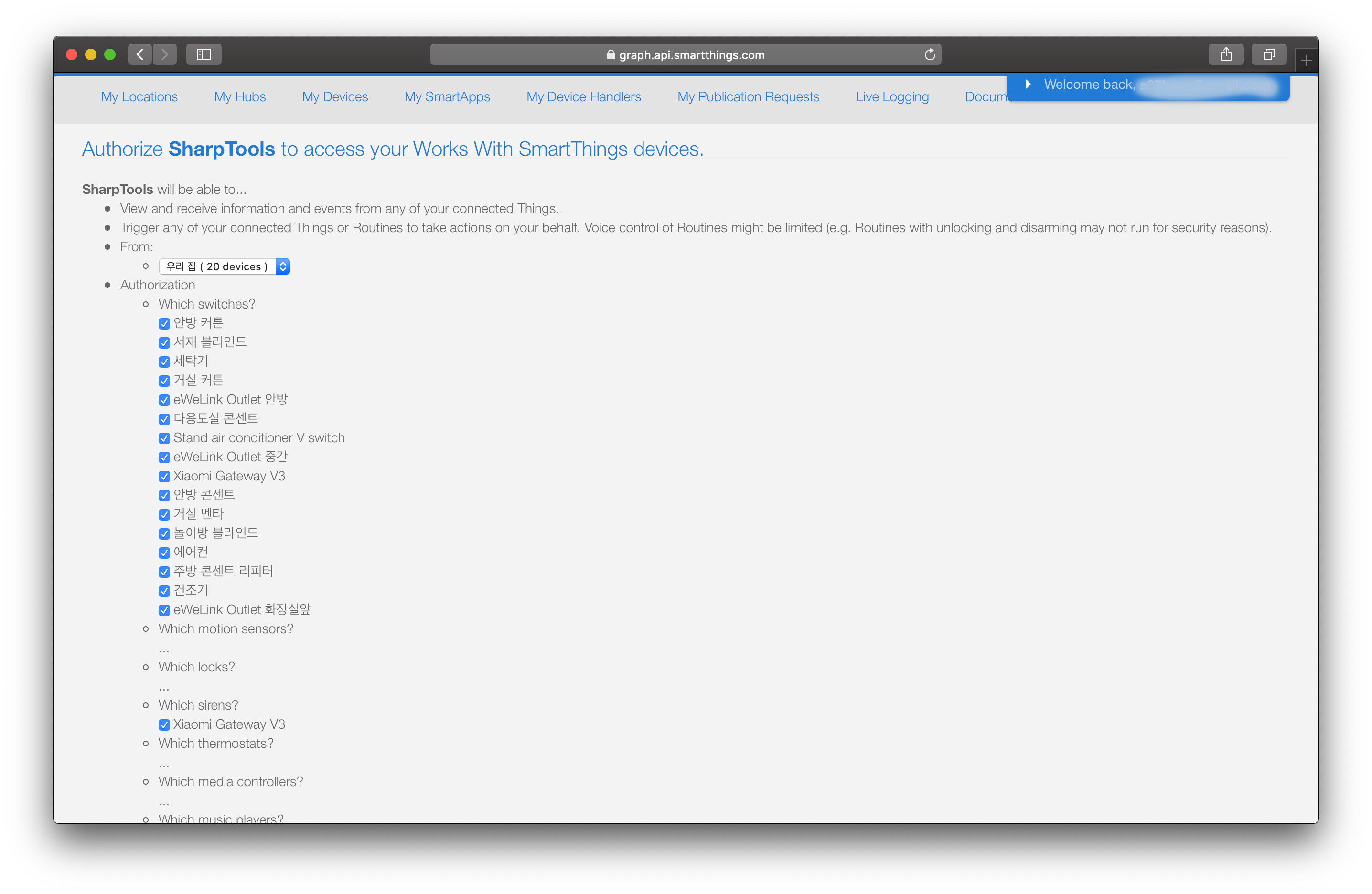 로그인을 한 후 사용하고 싶은 기기들을 모두 선택해주면 됩니다. 저는 싹다 선택했어요.