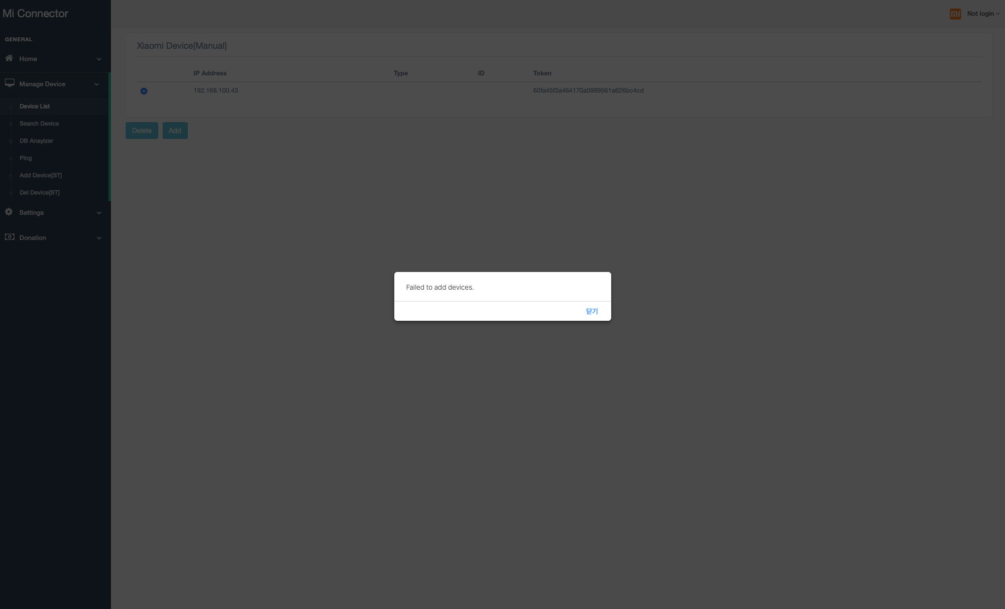 제어도 물론이거니와 게이트웨이 자체도 로그가 찍히기 않더라고요. 아.. 이거 미커넥터와 연결이 떨어졌구나! 싶어서 미커넥터에 접속해봅니다.